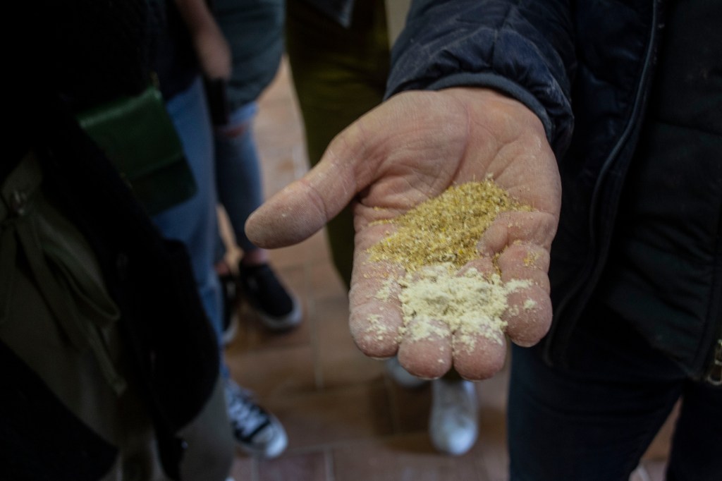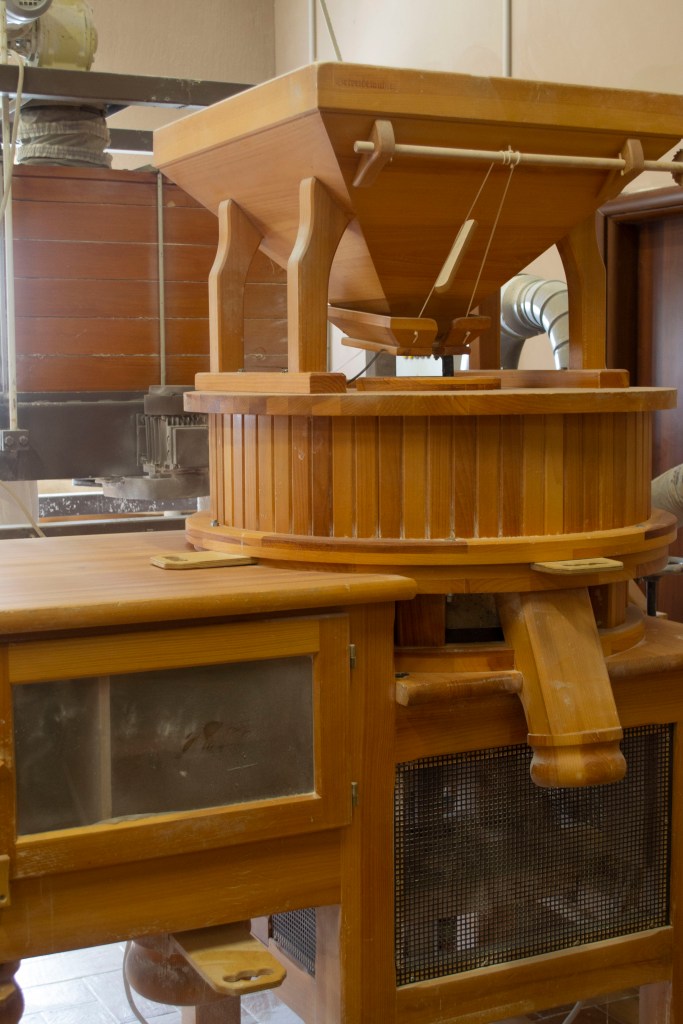 Fornovecchio’s flour is unique in its production. They use a traditional stone mill to grind up their grain as opposed to a technological mill. They respect and honor the traditional method of making flour. The factory produces many kinds of flour including semola, a thicker flour used for making pasta. The flour is made from the grains they grow on their farms. The types of flour and pasta produced is dependent upon the growing seasons of the grain. They produce pastas made from many different types of grain, the most traditional of these being monococco. From grain, to dough, to wet pasta, to dry pasta, it takes about 24 hours for the factory to make 10 kilos of sellable product.