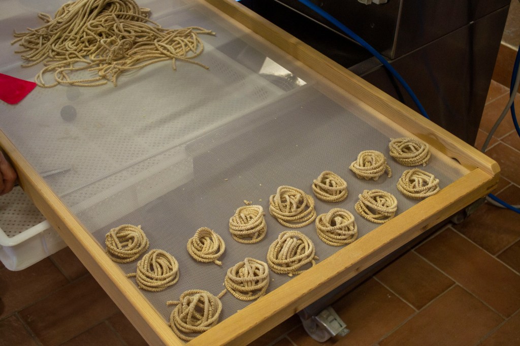 The Spaghetti is rolled into little “nests” so that when it is dehydrated it doesn’t break easily.